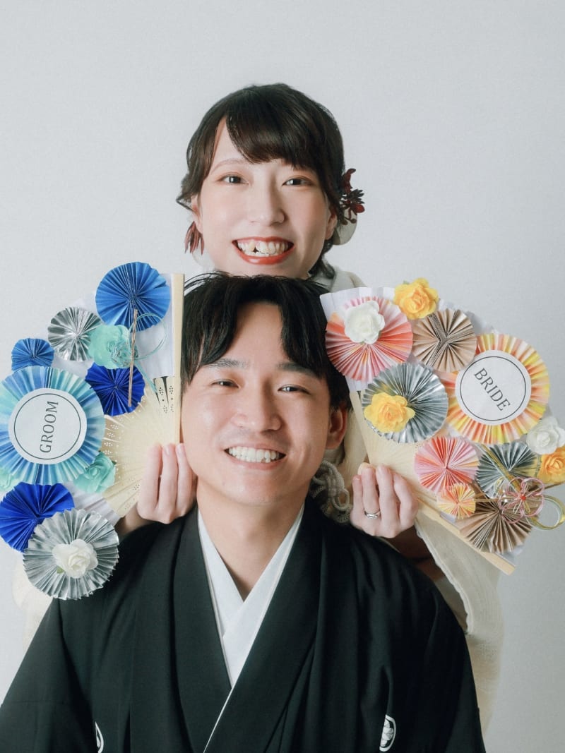 次も新郎新婦様が持ってきてくださったカラフルな扇子との1枚🩷💙