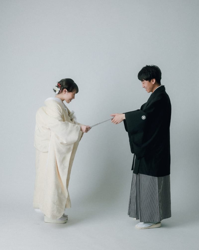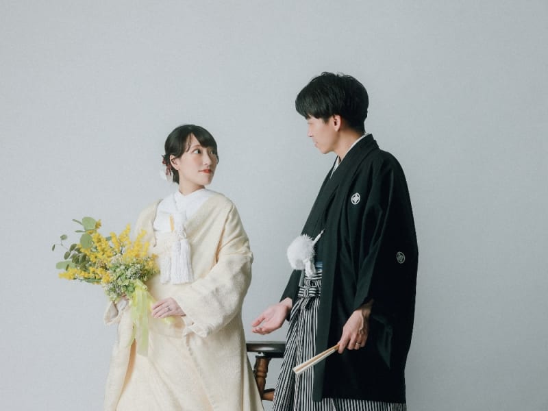 白無垢と紋付袴の和装スタイルでの一枚✨