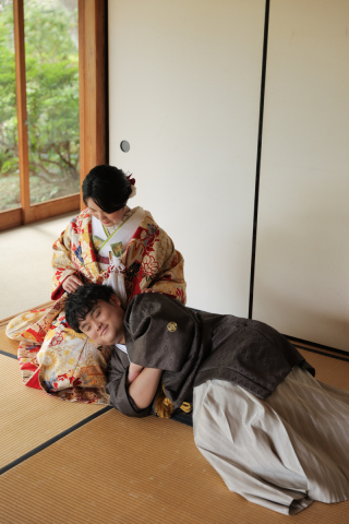 撮影中は笑顔が絶えず、まるで映画のワンシーンのような穏やかで温かな時間が流れていました。伝統的な雰囲気の中にも、おふたりらしい自然な表情や仕草を大切に、カメラマンが丁寧に撮影いたしました