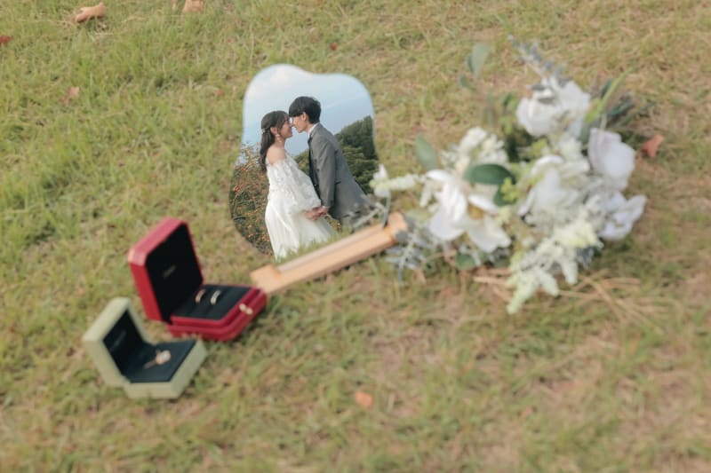 鏡を使っておふたりを映し込んだ“写真立てのような構図”も撮影。