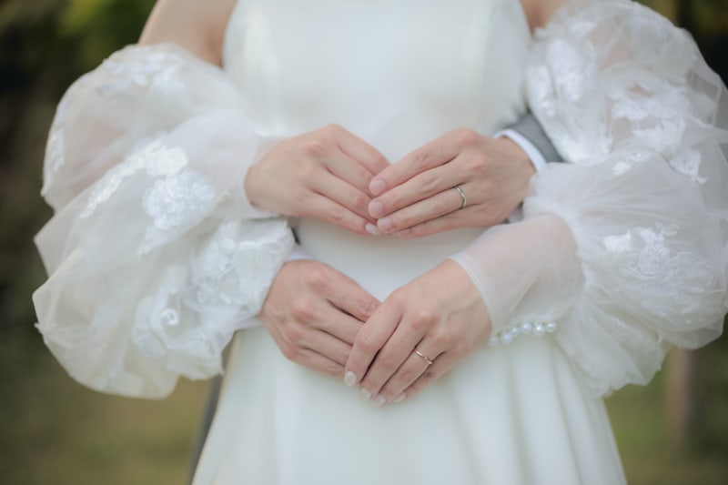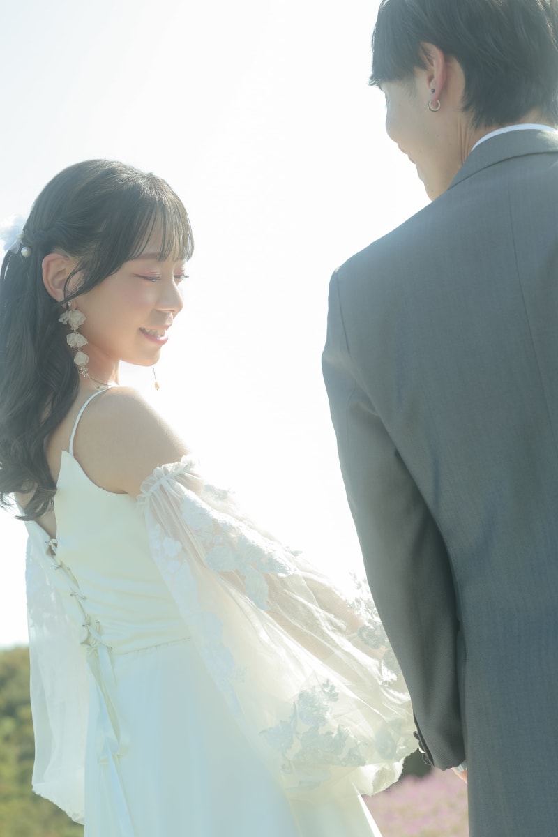 ご新婦様が優しく寄り添うように立つ姿を撮影。