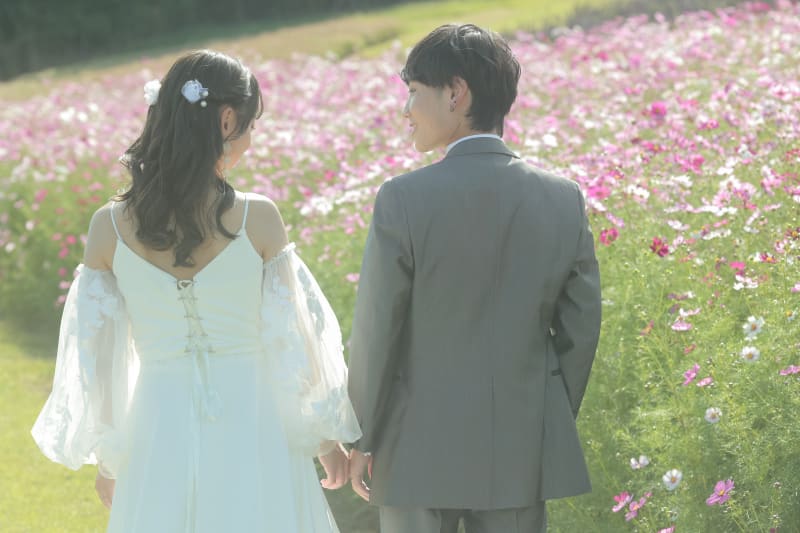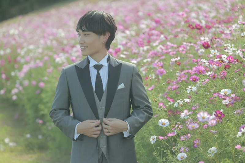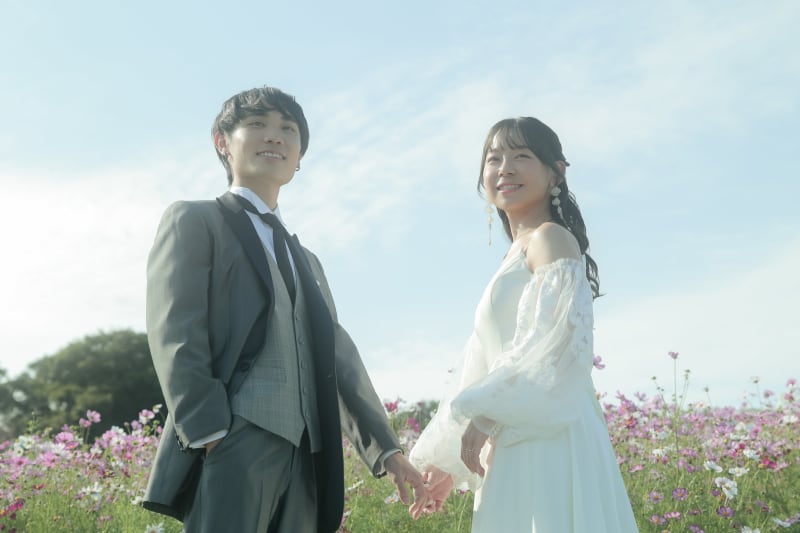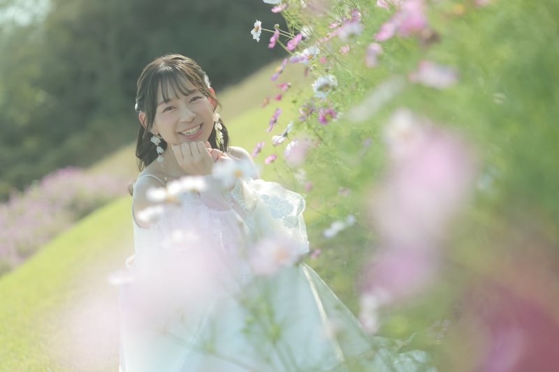 広がる青空と白い雲、そして花畑の中での撮影はまさに“淡路島らしさ”に溢れていました。