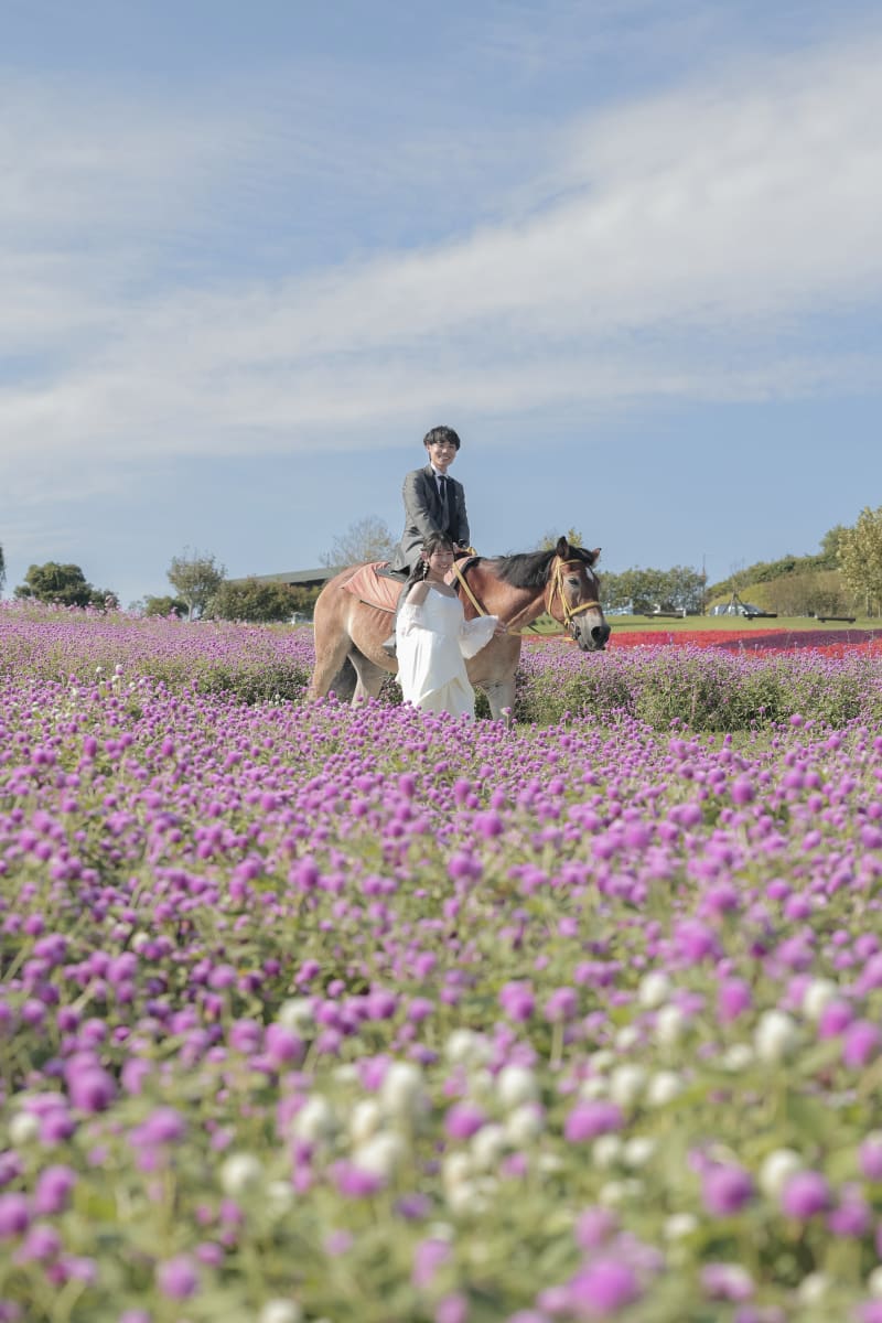 淡路島花さじきでのロケーションフォト〜馬と花と青空に包まれて〜