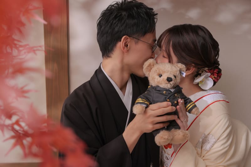 紅葉のフレームに包まれて、まるで映画のワンシーンのようなお写真が撮れました!