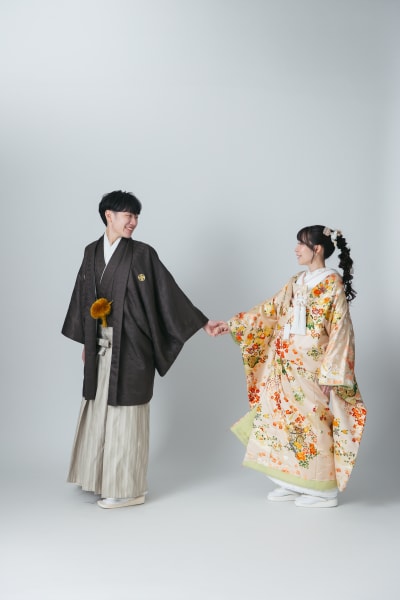 和装の衣装合わせから入らせていただき、かっこいい感じはふたりらしくなさそうなので可愛いカジュアルな雰囲気にしたいと衣装のコーディネートを決めました♪