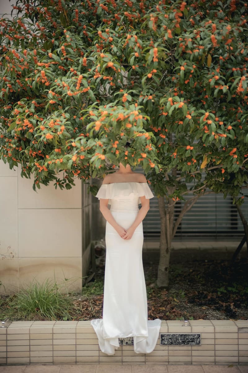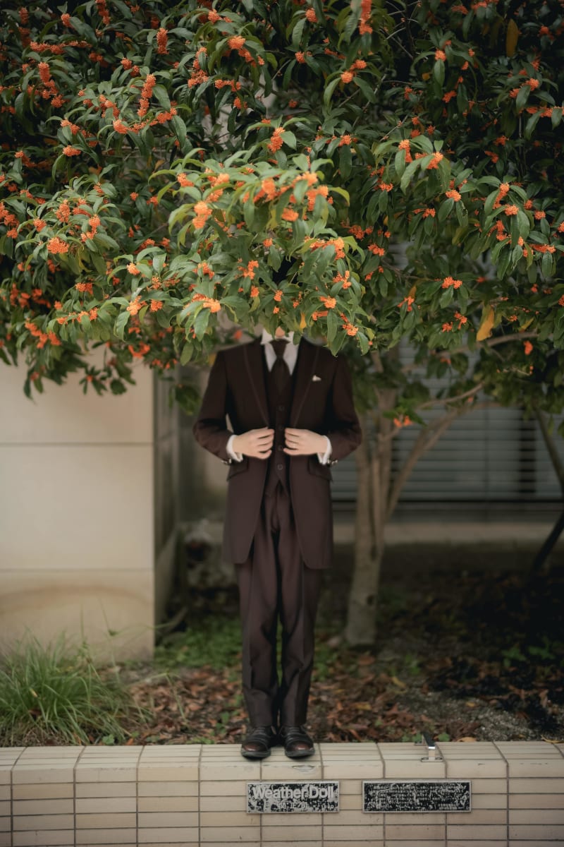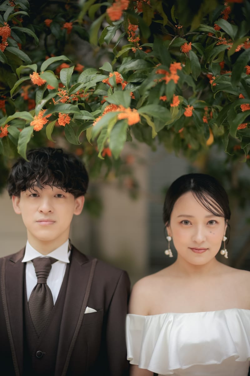季節やタイミングでこのようなお花(キンモクセイ)の花と一緒に撮影もできます。因みにキンモクセイの花言葉は
