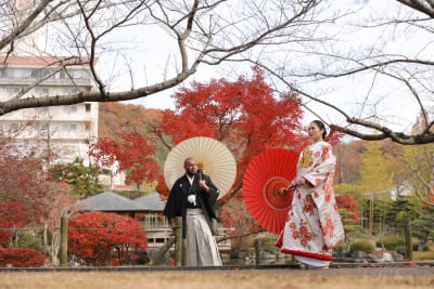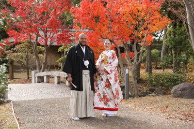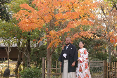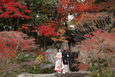 今回は、秋の紅葉がとってもきれいな日本庭園で撮影した、和装ウェディングフォトをご紹介します。