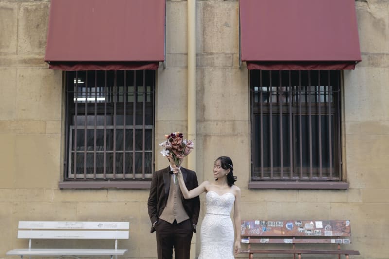 お茶目なお二人だったので、ブーケを使った遊びカットも撮影。