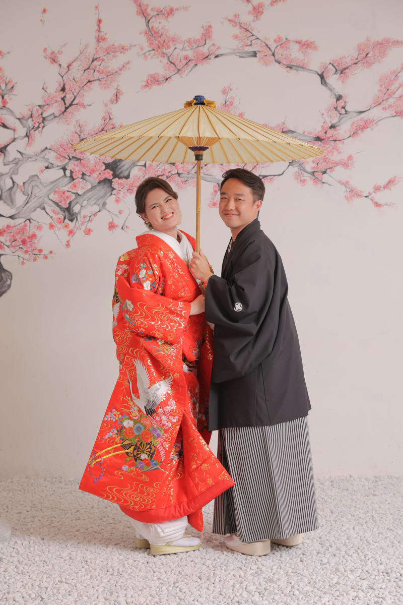 今回は屋内庭園スタジオで白無垢と色打掛の2着で撮影したお客様の写真を紹介します!