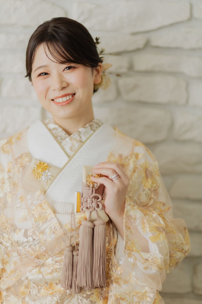 ゴールドの刺繍に合わせたオレンジメイクをご提案いたしました。