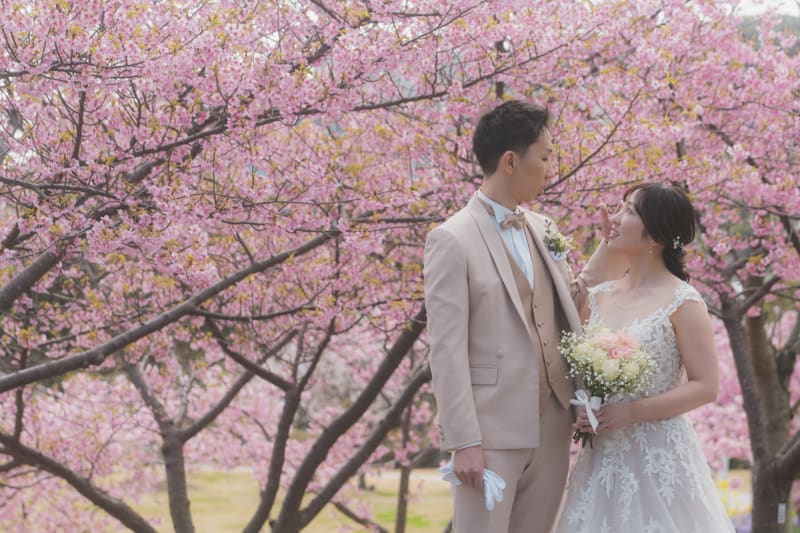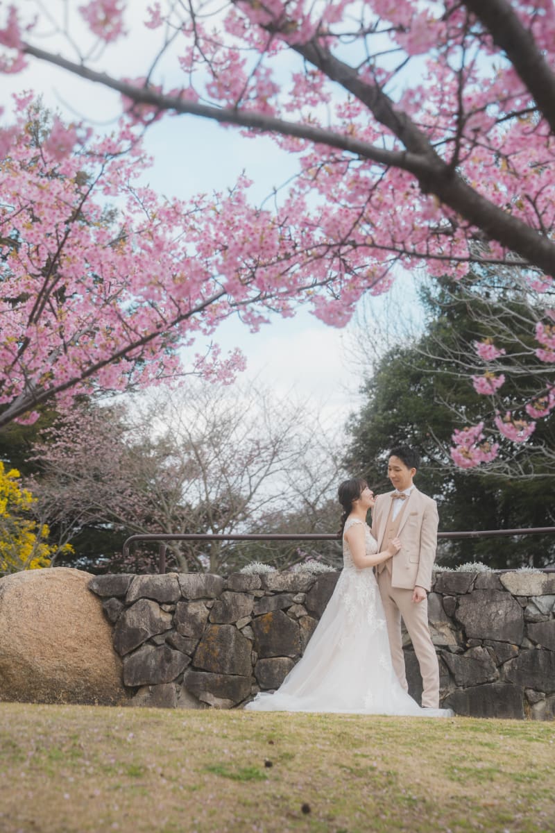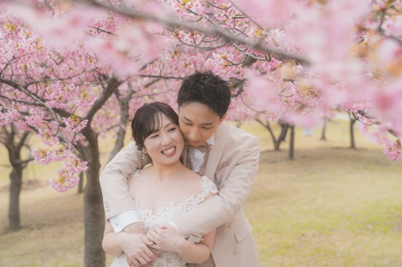 その桜の下で撮るフォトウェディングは、どこか肩の力が抜けた、自然体の時間になる。