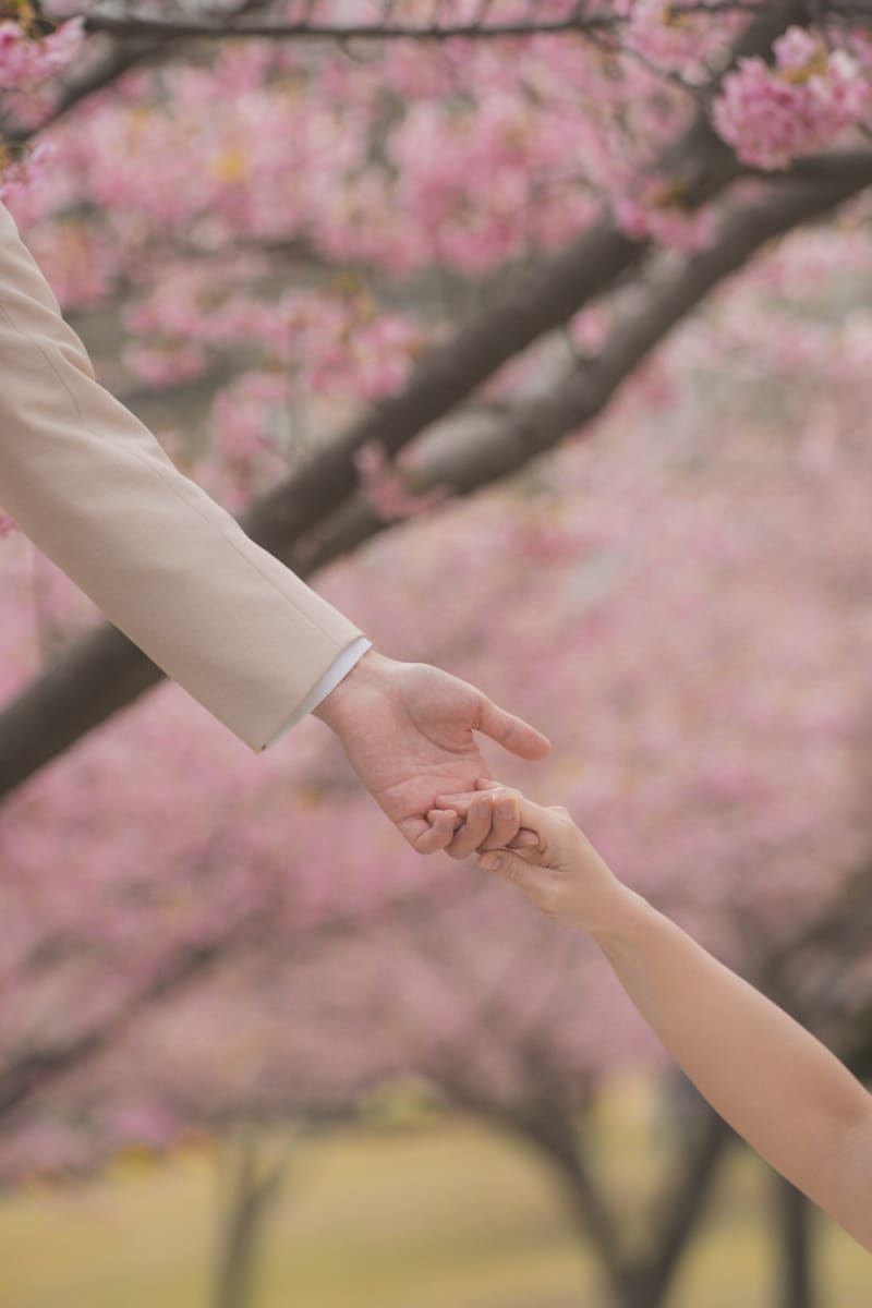 桜のピンクと重なり合いながら、ふたりの存在をやさしく引き立てていた。