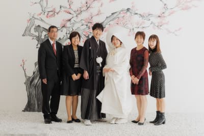ヘアメイクや新婦様らしさで選んだコーディネートがわかるようにソロ写真や、ご家族みんなで集合写真♪