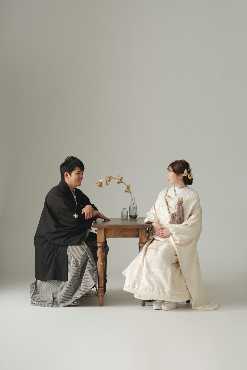 こんにちは。StudioTVB神戸店フォトグラファーの澤村です! 今日はシンプルかつお二人っぽさも取り入れた和装スタジオのご紹介です◎ “真っ白な背景で写真を撮る”ってなったらこう思う方も多いのではないでしょうか? 「真っ白って何をするんだろう...」 「写真苦手だしシンプルな背景で上手くできるかな...」などなど。 わかります、撮る側の私も撮られるのは大の苦手です...笑 でも大丈夫です!お二人の雰囲気や空気感に合わせてお店にある小物をセットしたり、緊張をほぐすために動き回ってもらったり。