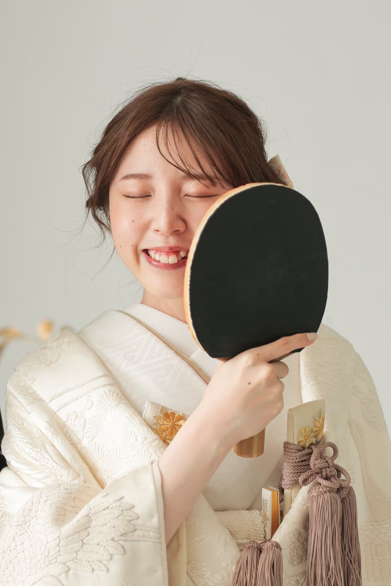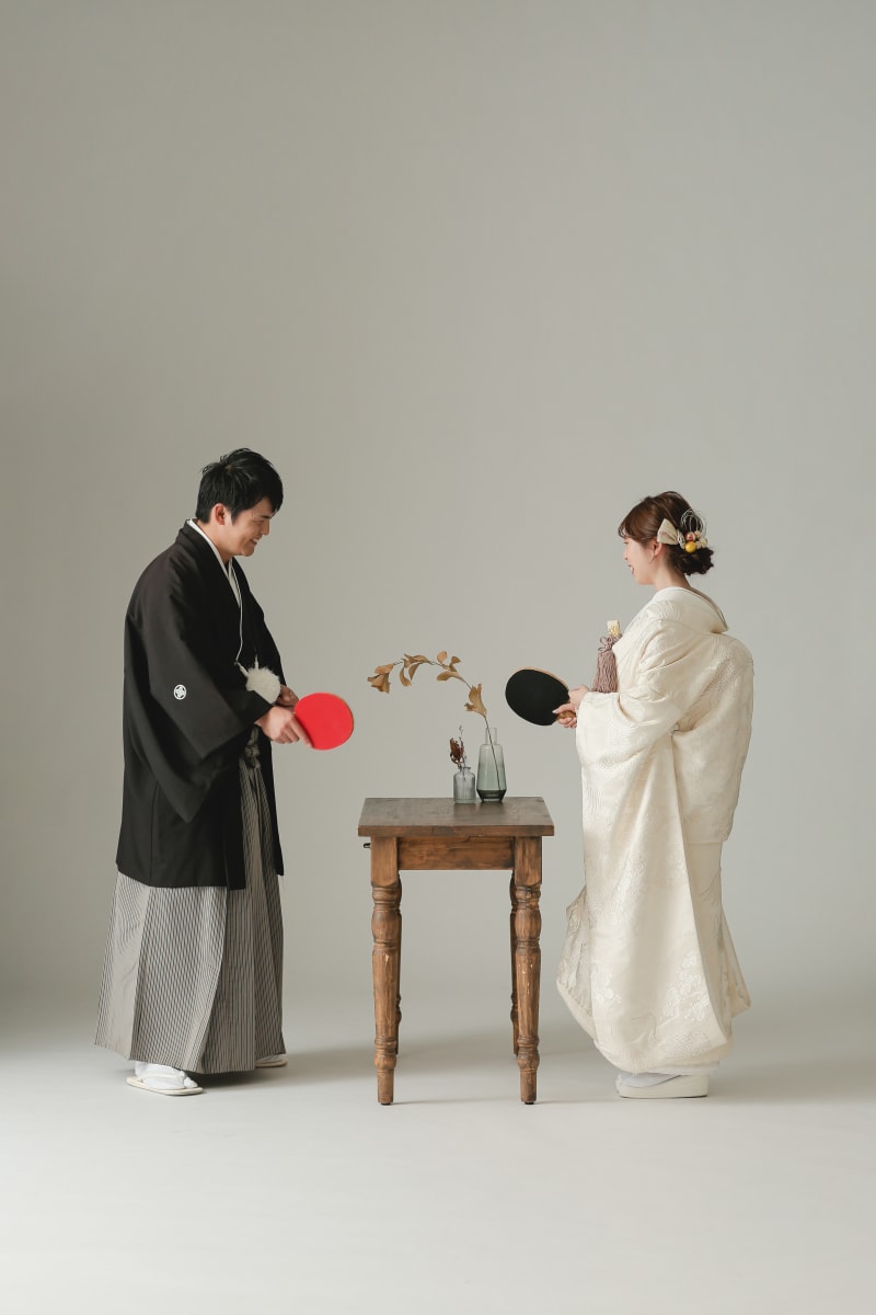 少し緊張がほぐれてきたらカメラマンからの無茶振りが入ることも、、? 今回のお二人は共通の趣味である卓球のラケットを持ってきてくださっていたので、それを使っての撮影もしました! おしゃれ机を卓球台にしてみたり、ラケット持っていい顔して〜!と無茶振りしてみたり...! その中で起こる不意の瞬間も大切に。楽しく気張らず撮ってみるのはどうでしょう??