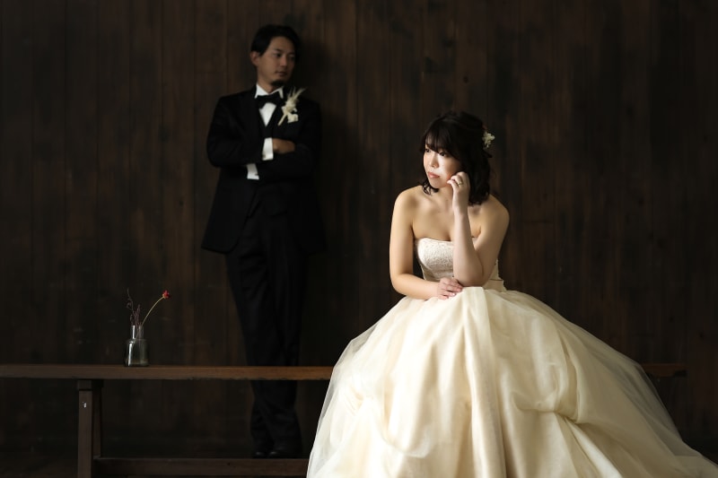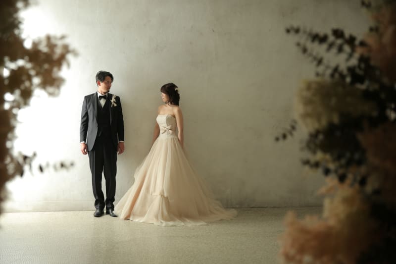 あえて少しレトロな加工が施してある壁での撮影です。少し下がって左右にお花を入れて撮影をすることもあります。