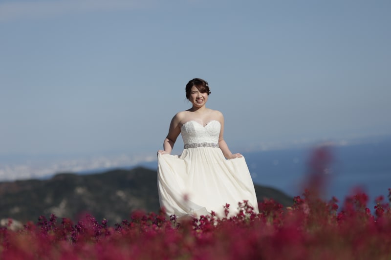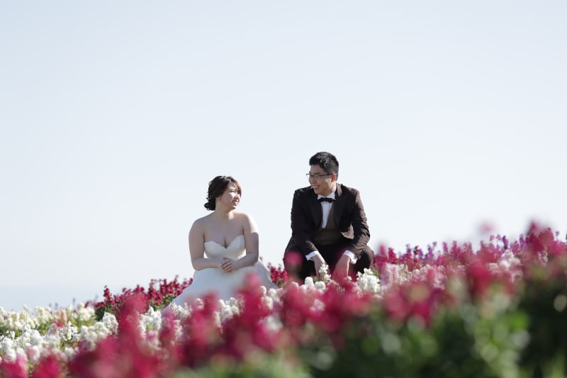 花畑に囲まれたおふたり・・・幸せな感じが伝わってきます。
