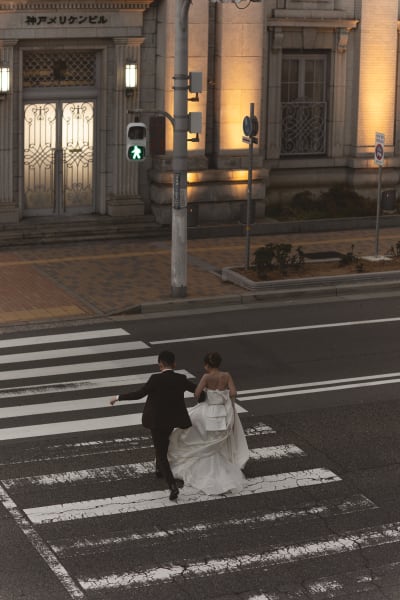 冬の居留地撮影はとても厳しい寒さがありますが、冬にしかみられないイルミネーションと一緒に撮影ができます。