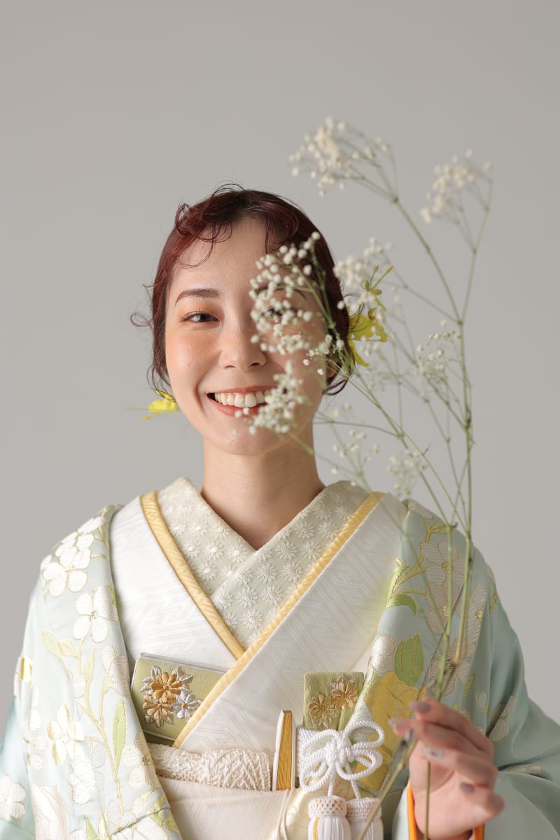 和装コーディネートにメイクの色味や髪飾りなどを合わせると統一感が出ます🫧
