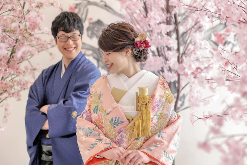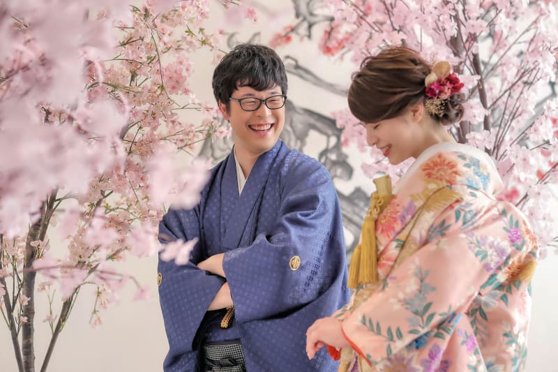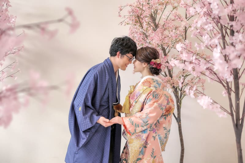 天気に左右されず、室内のスタジオで桜と一緒に撮りませんか?