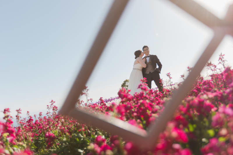 こんにちは! 今回ブログ担当させていただきます、赤枝です。 前に撮影のお手伝いをさせていただいた淡路島プランのおふたりの紹介です! 淡路島はやはり関西の観光地でもたくさんの人が訪れる場所・・ ウエディングフォトでもいきたい!ここで撮りたい!という声が多く上がるスポットです! 今回は、その中でも『花さじき』〜『慶野松原』の2大スポットを選んでくださいました! まずは花さじき!