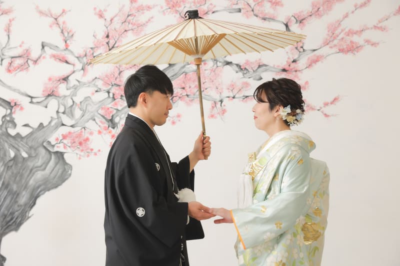 番傘を持っていただくことで一気に和装らしさがでていいですね・・・