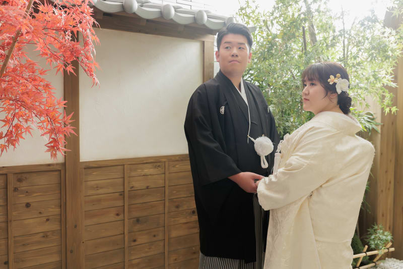 まずは和装のスタジオで当店一押しの屋内庭園スタジオ撮影からです♪