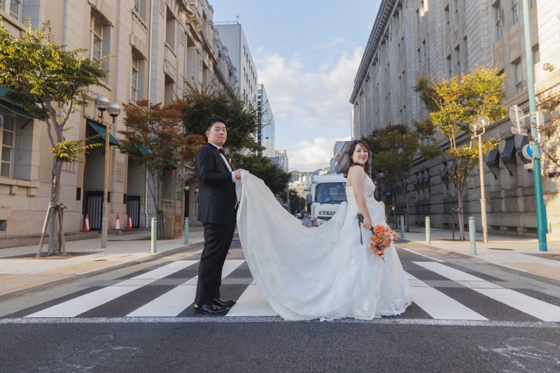 神戸の街並みやカフェの前での撮影、どの場所で撮影してもおしゃれですね♪