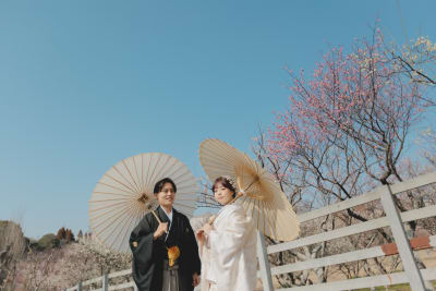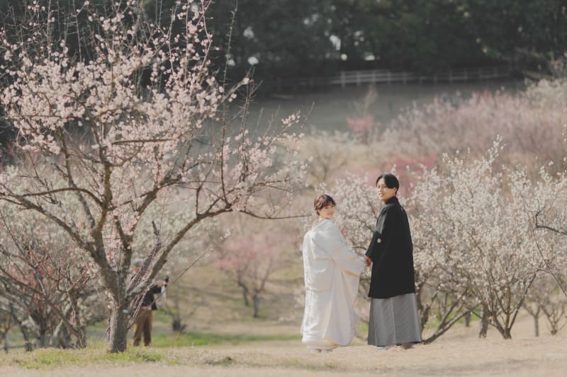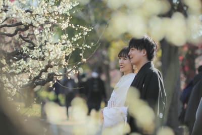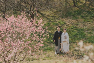 桜の前に咲く【梅】華やかで可愛らしい雰囲気の撮影ができるのですごくおすすめです!