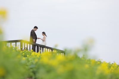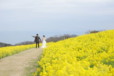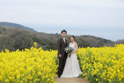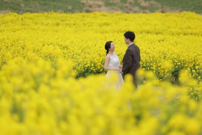 一面に菜の花が咲くので、囲まれての撮影は圧巻です。