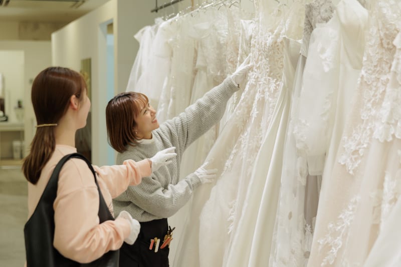 スタジオTVB神戸店にはウエディングドレス・カラードレスがおおよそ100着ご用意しております。
