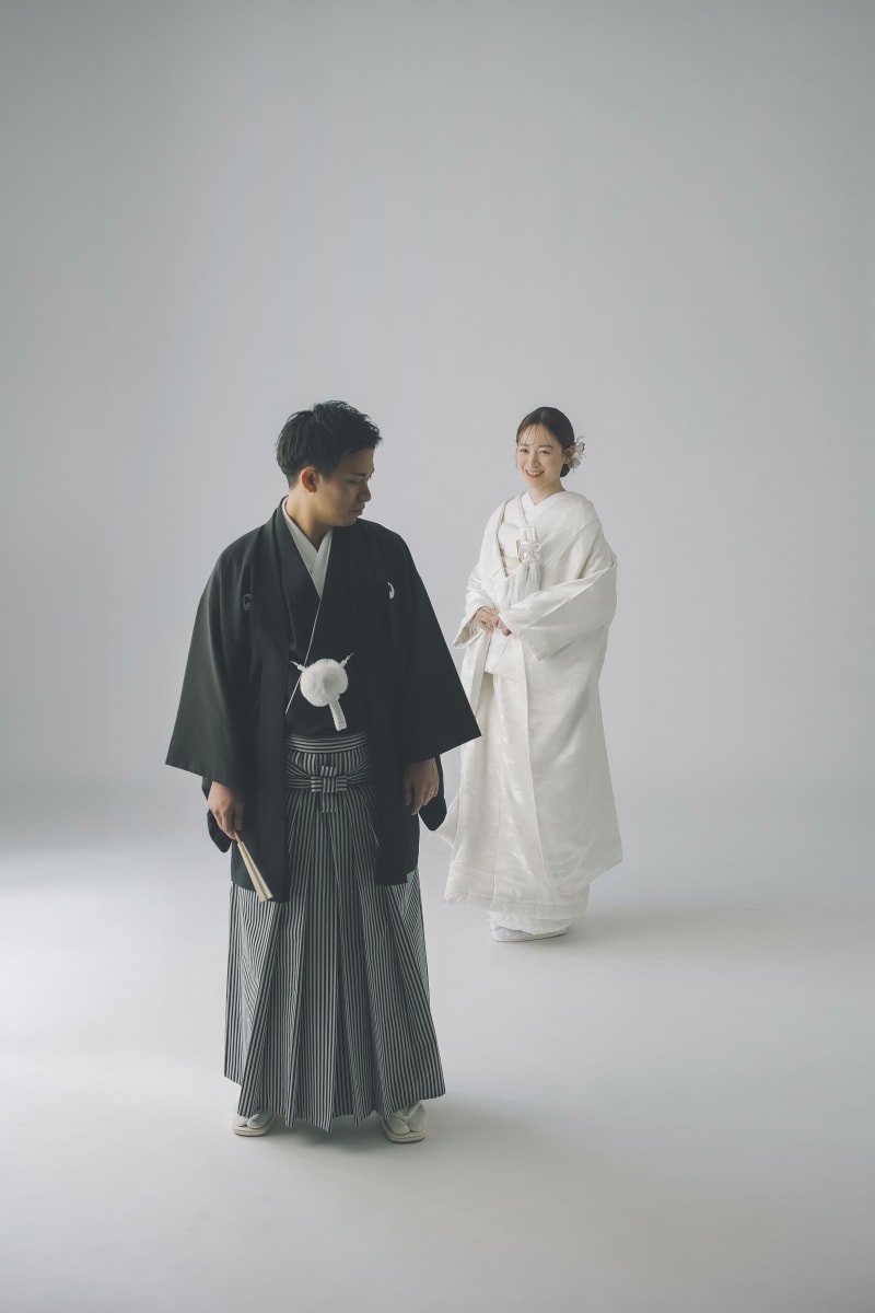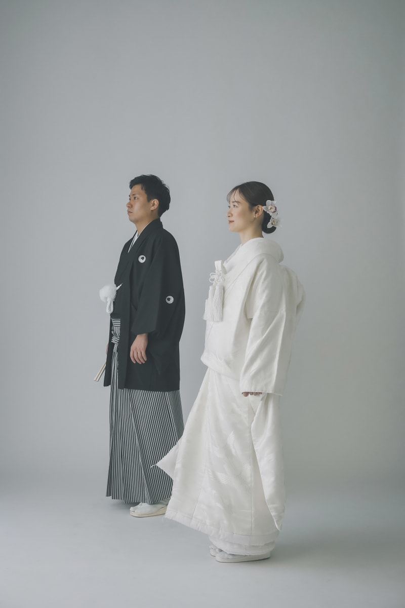 白無垢の新婦様は神聖な雰囲気のお着物で、新郎様も紋服は初めてとおっしゃっていました。