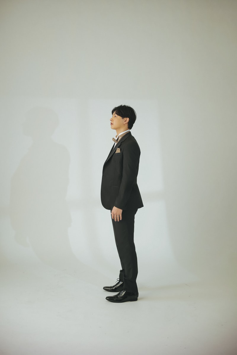 新郎様は、シックなイメージで窓ガラスからの影をいれての撮影をしてみました。