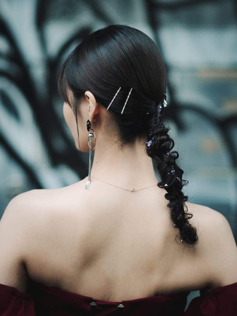 アクセサリーと髪飾りを合わせるとぐっと統一感が出ます。