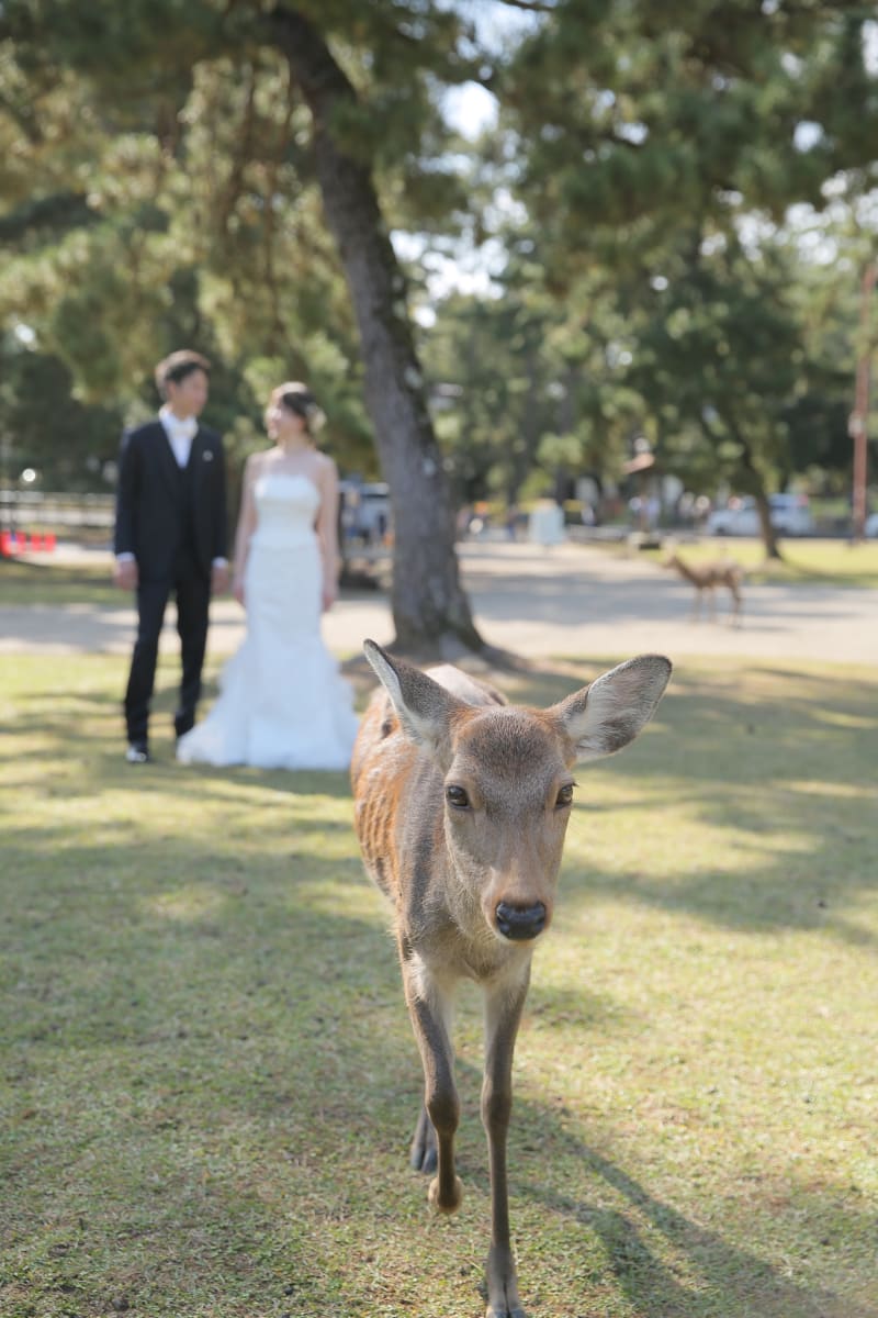 奈良を一望できる若草山で、夕陽や鹿とのショットも
