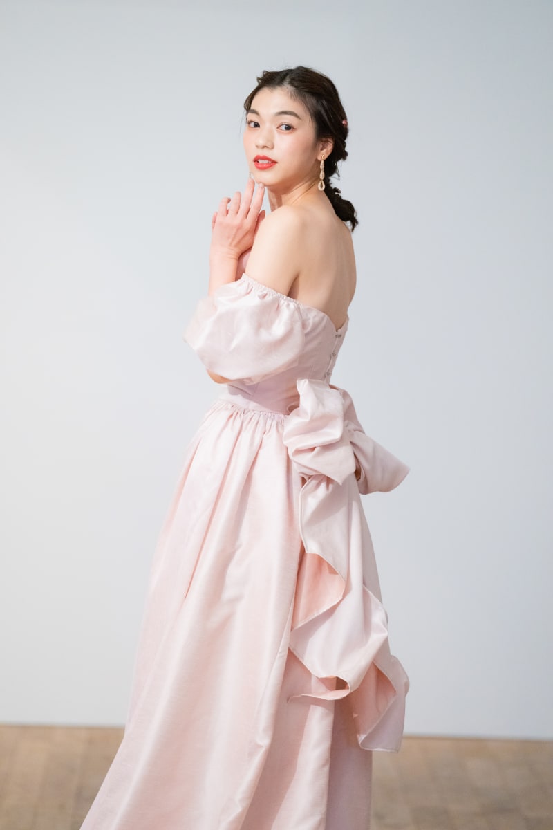 ベビーピンクとバックのリボンが愛らしいドレス♡