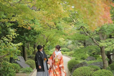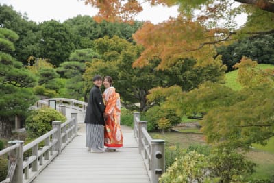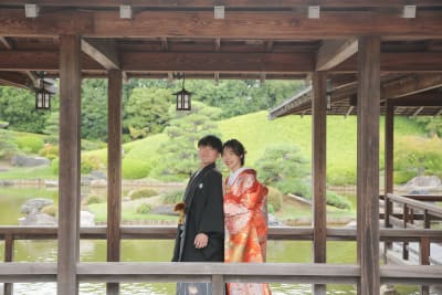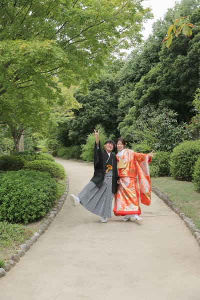大仙公園内に庭園があり、和装らしい撮影ができるんです🎶