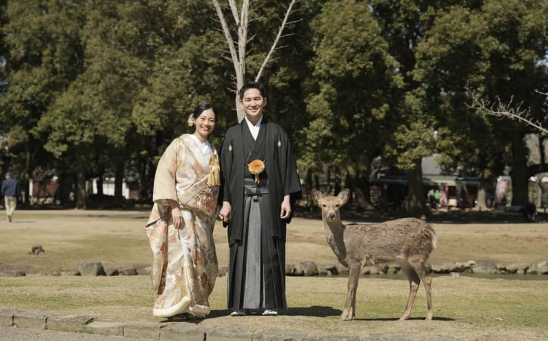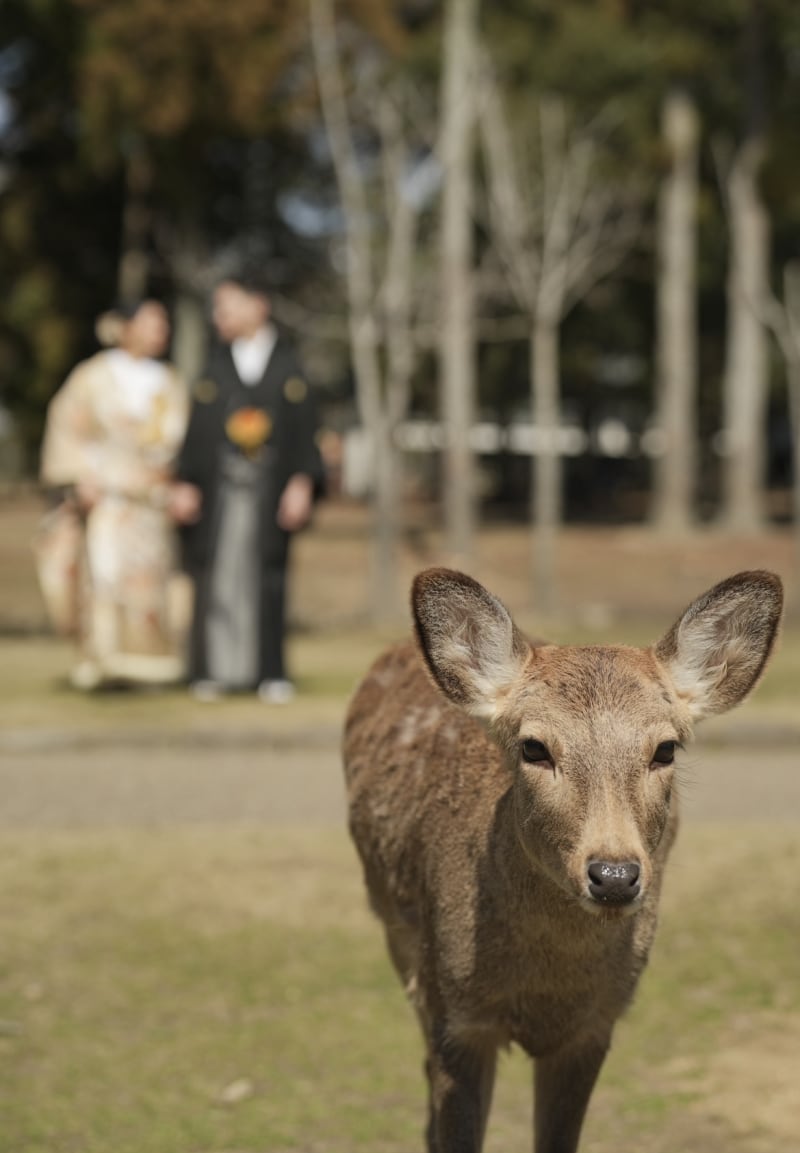 奈良を一望できる若草山で、夕陽や鹿とのショットも