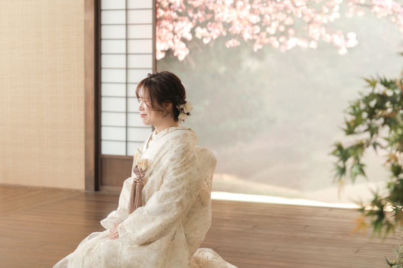 - 新婦様の白無垢は、真っ白のものやアイボリーのものがあり、小物もたくさんの色、柄があるので新婦様の好きなコーディネートにすることができます!