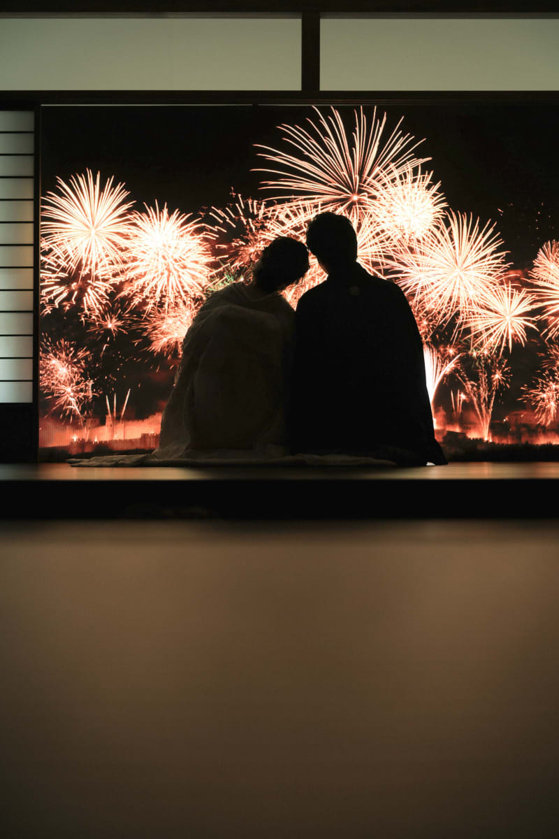 - なんばパークス店には他の店舗にはない大型LEDモニターがあるので、大迫力の花火の画像を映し出してお写真を撮ることも可能です! 他にも紅葉や桜なども映すことができます!