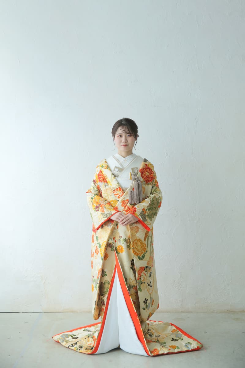 2着目は、全体がオレンジの花柄で統一された打掛です!