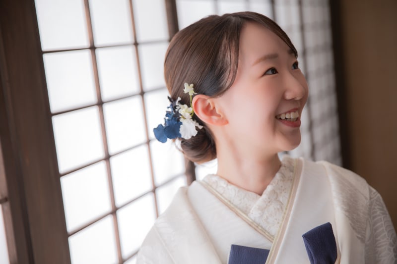 新婦様の真っ白な肌と濃い小物が相性抜群です♪