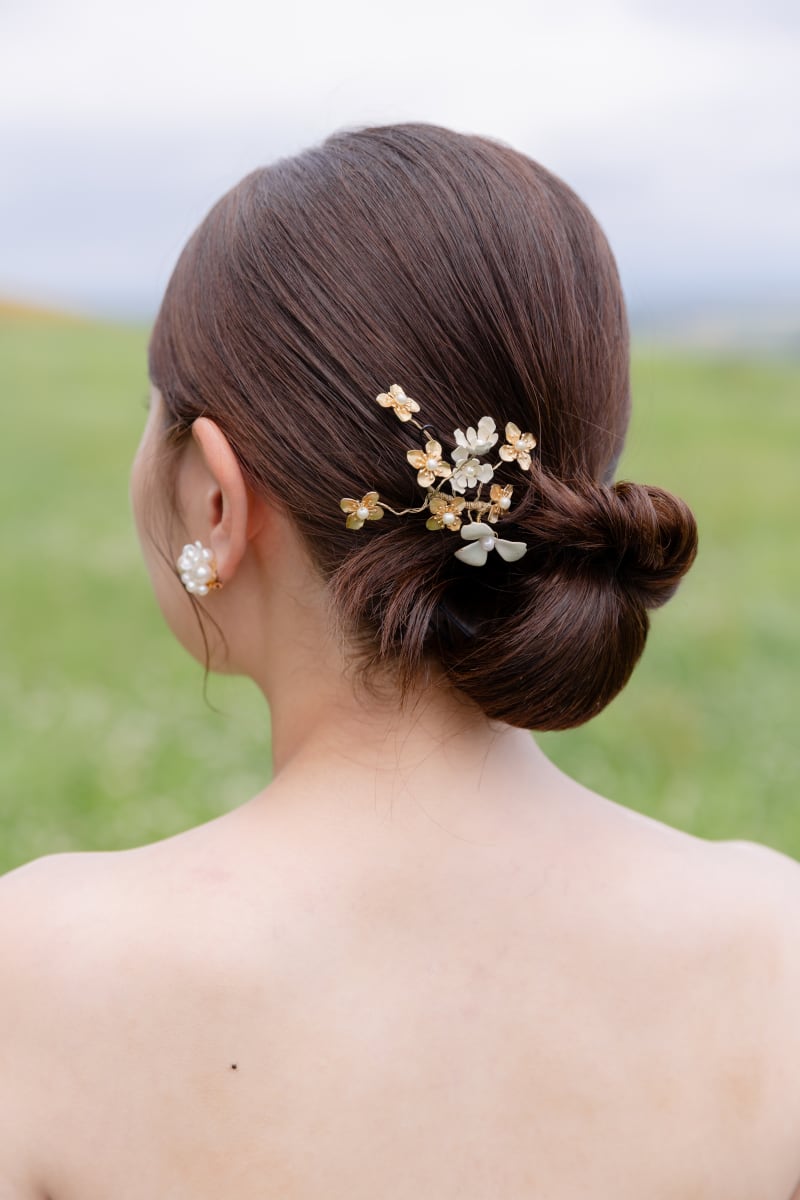 ヘアはつるんとしたカチモリヘアで綺麗めに。