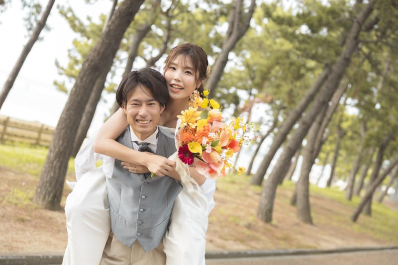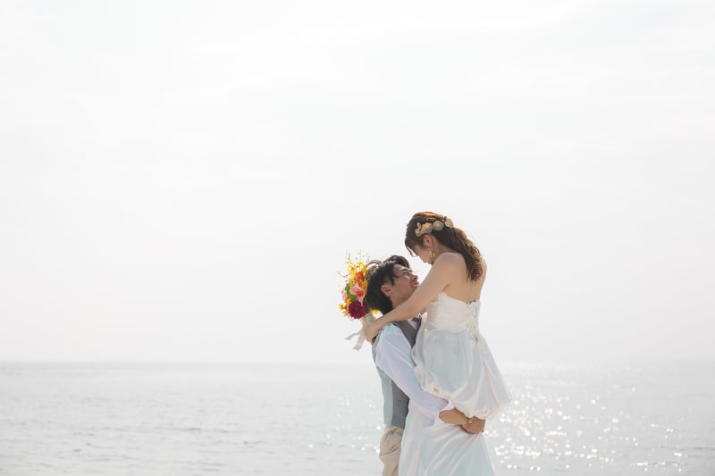 背景の海はもちろん見つめ合うお二人の笑顔がとても綺麗です‼︎
