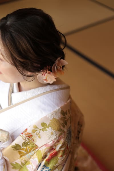 和装ヘアは、新郎支度のお顔立ちやお着物の雰囲気に合わせてアレンジすることで、一層特別感が引き立ちます。