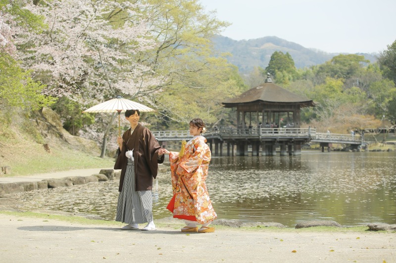 スタジオTVB奈良店では、奈良の豊かな自然と歴史的な建造物を背景に、お二人の特別な瞬間を美しく写真に残すことができます。