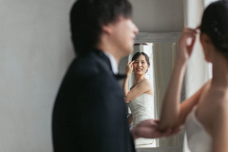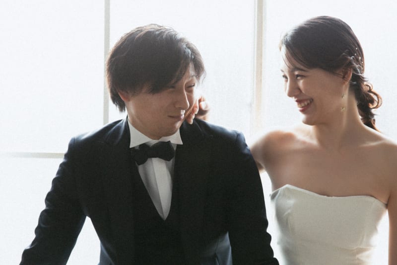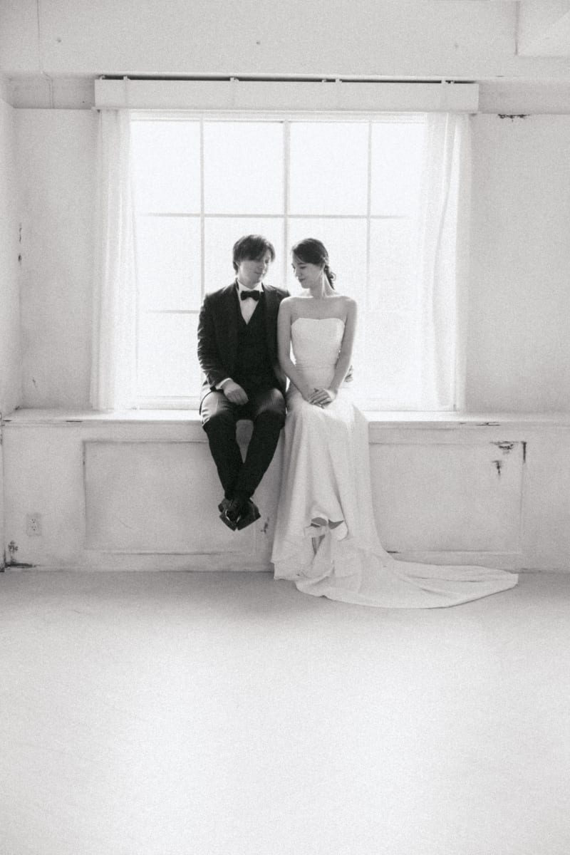 また、窓からの柔らかな自然光を活かし、あえて色を抜くことで、おふたりの存在感をより深く切り取りました。