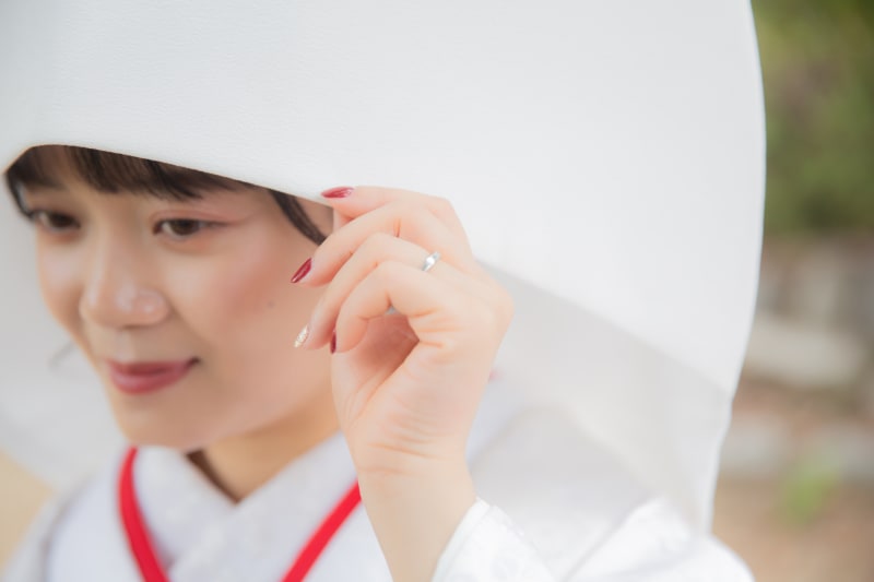 ドレスを着る際につけるウエディングベールと同じように、『新郎以外に顔を見せない』という意味が込められています。