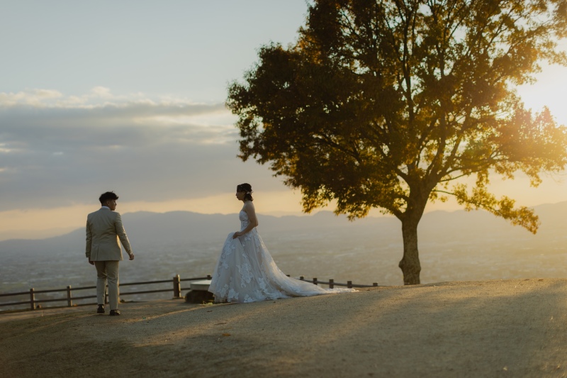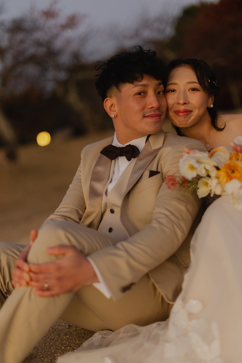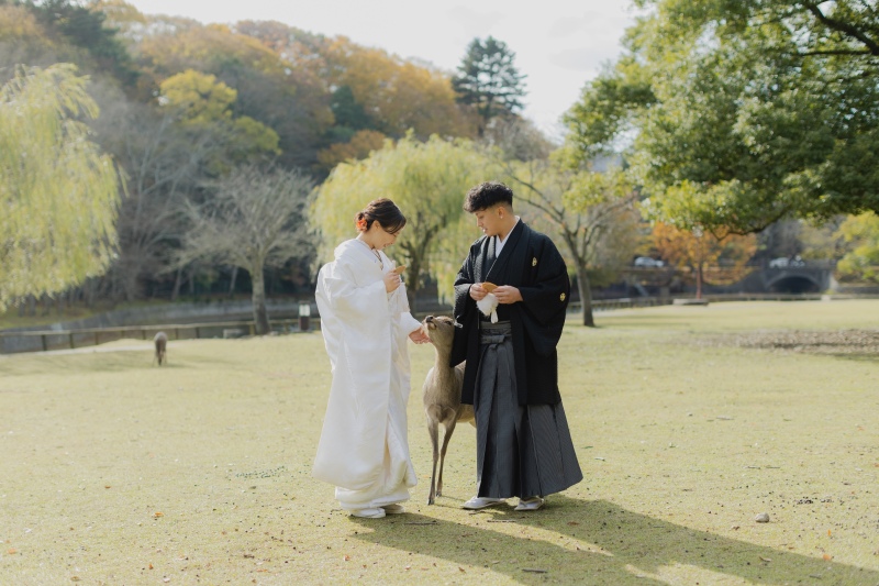 奈良を一望できる若草山で、夕陽や鹿とのショットも