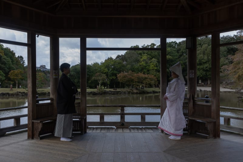 奈良を一望できる若草山で、夕陽や鹿とのショットも